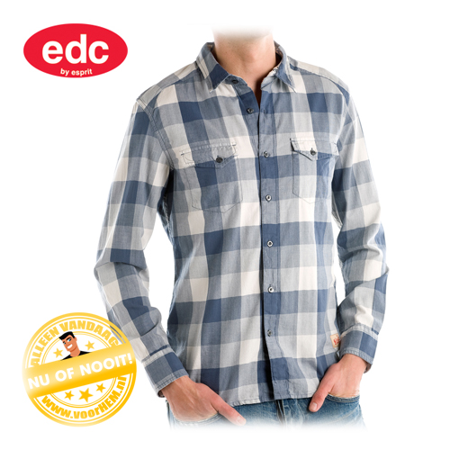 Dit frisse overhemd van EDC by ESPRIT tik je vandaag bij voorHEM.nl voor een spotprijsje op de kop! De 2 borstzakken met knoopsluiting en de sportieve borduring op de rug geven dit blauw-wit geblokte overhemd die zorgeloze casual look. Spijkerbroek eronder en klaar! Verkrijgbaar tot 23:59 uur of zolang de voorraad strekt.