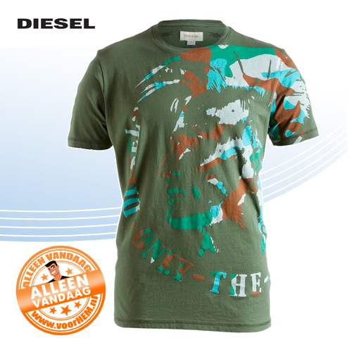 Hoe staat het met jou mooi-weer-garderobe? Goed op orde, of ga je het aan elkaar breien met een paar restanten van voorgaande jaren? Om je een eindje op weg te helpen vandaag een leuk Diesel shirt uit de spiksplinternieuwe zomercollectie, maar dan met een lekkere korting! Je moet even goed kijken, maar er is wel degelijk iets in de afbeelding te ontdekken. Kom je er niet uit? Vooruit dan, een hint: je vindt het boven op je romp. Dat moet een makkie zijn, toch? Doe gauw je voordeel met dit Diesel shirt, want voor je het weet ben je te laat!