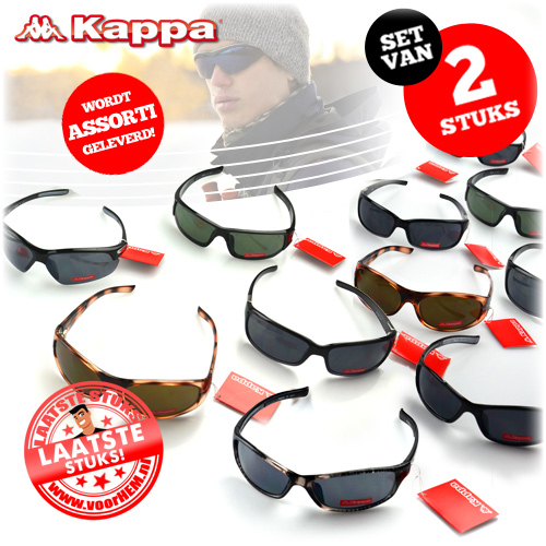 Heerlijk een vakantie in de winter. De een gaat naar een warm oord en de ander op wintersport. Wat hebben deze vakanties gemeen? Juist, de zon! Tenminste, daar hopen we allemaal op. Heerlijk, die lekker warme gloeiende bol op je gezicht. Maar je raadt het al, je moet je ogen er uiteraard wel voor beschermen. Daarom krijg je vandaag 2 zonnebrillen van Kappa met een vette 69% korting. De brillen worden assorti geleverd, maar dat is maar goed ook. Want keuzes maken is veel te moeilijk en ze zijn stuk voor stuk gaaf.. Én beschermend!