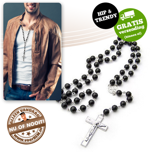 Sieraden voor vrouwen? Dat is tegenwoordig een mega ouderwetse gedachte! Het is tenslotte bijna 2014! Tijd voor wat hipheid in jouw accessoire-voorraad. De rozenkrans is echt een item dat een stoere uitstraling versterkt. Doordat de ketting aan het eind slecht enkel is, is deze heel mooi te dragen bij een shirt of trui met V-hals. De zwarte kleur valt met gemak te combineren met allerlei ander kleuren, dus hij zal nooit vervelen! Deze rozenkrans scoor je alleen vandaag voor zo'n laag prijsje, waarbij hij ook nog eens gratis naar je thuis verzonden wordt. Wacht niet langer, want we sturen de deal vandaag zelfs gratis naar je op!