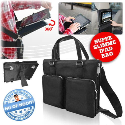 Deze aanbieding heeft even je volle aandacht nodig om 'm te kunnen doorgronden. Deze iPad bag heeft namelijk súper veel handigheidjes die het gebruiksgemak giga gaan vergroten. De tas is naast een groot vak voor je iPad ook voorzien van 2 kleinere op de voorzijde, maar heeft ook nog héél veel andere mogelijkheden! Bijvoorbeeld een standaard, de mogelijkheid om 'm in de auto stevig aan de stoelleuning te bevestigen en nog véél meer. Het meest innovatieve is de gebruiksvriendelijkheid wanneer je onderweg bent. De tas is al dragend over je schouder uitklapbaar en in een ideale kijk- en werkhoek te plaatsen. De stevige tas is beschermend, waterproof en als schouder- of handtas te gebruiken. Je leest het al, de mogelijkheden zijn bijna onbegrensd, dat maakt deze topper nóg aantrekkelijker voor dit prijsje!