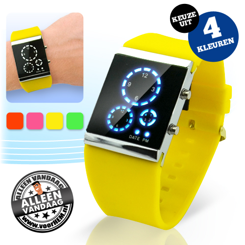 Een echte man weet wel hoe hij het doet. Opvallen en toch stijlvol blijven. Want geloof maar, een dergelijke gave is niet voor iedereen weggelegd. Voor de mannen die zijn bedeeld met deze gave, die weten wat hen te doen staat. Gauw je muis naar de Nu Kopen knop manoeuvreren. De heren die er liever wat advies in hebben, opgelet. Anno 2014 is het helemaal goed om op te vallen, het liefst met felle kleuren. Waar een paar jaar geleden met moeite de lichtroze kleuren in de mannengarderobe werden geaccepteerd, is de kleurrijke trend steeds verder uitgebreid. Tot de dag van vandaag. Je vrolijkt je simpele outfit op met een te gek item. Niet alleen opvallend door de kleur, maar ook door het interessante uurwerk. Kies dus je kleur en zorg dat je gezien wordt!